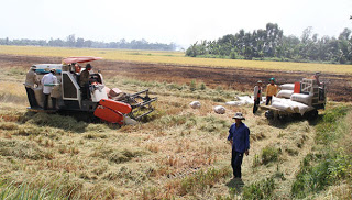 Thu hoạch lúa vụ ba tại huyện Cái Bè, Tiền Giang - Ảnh: Vân Trường